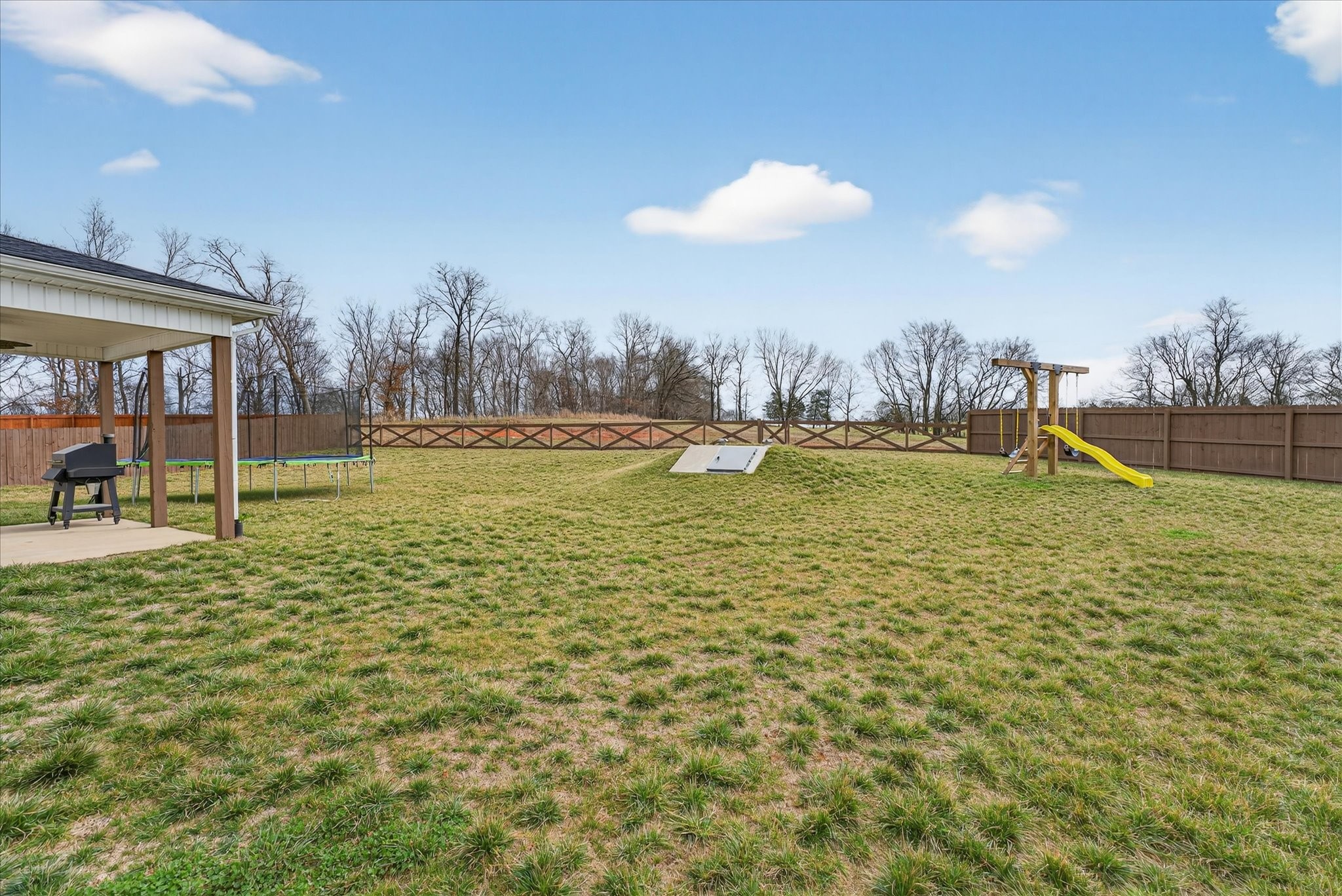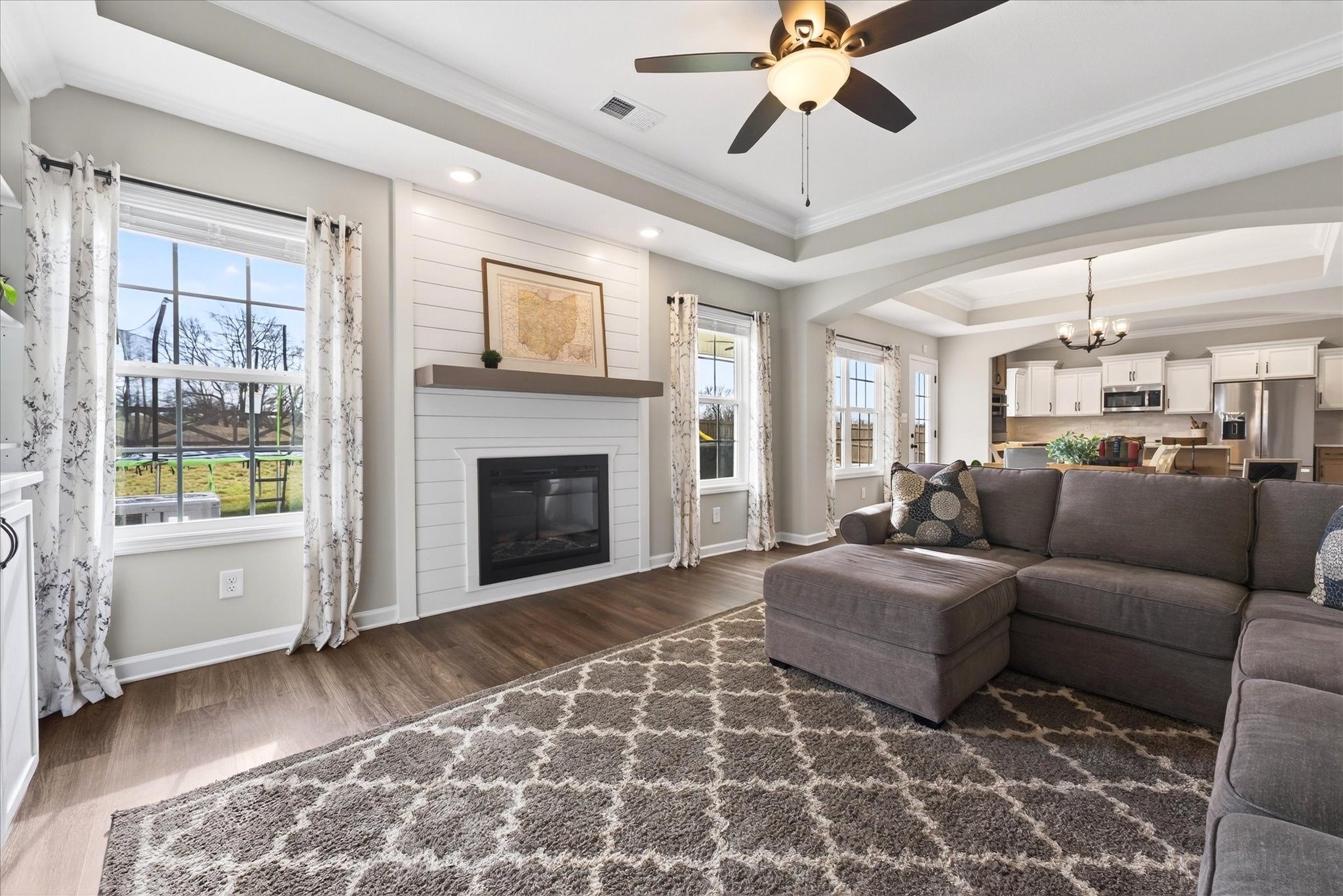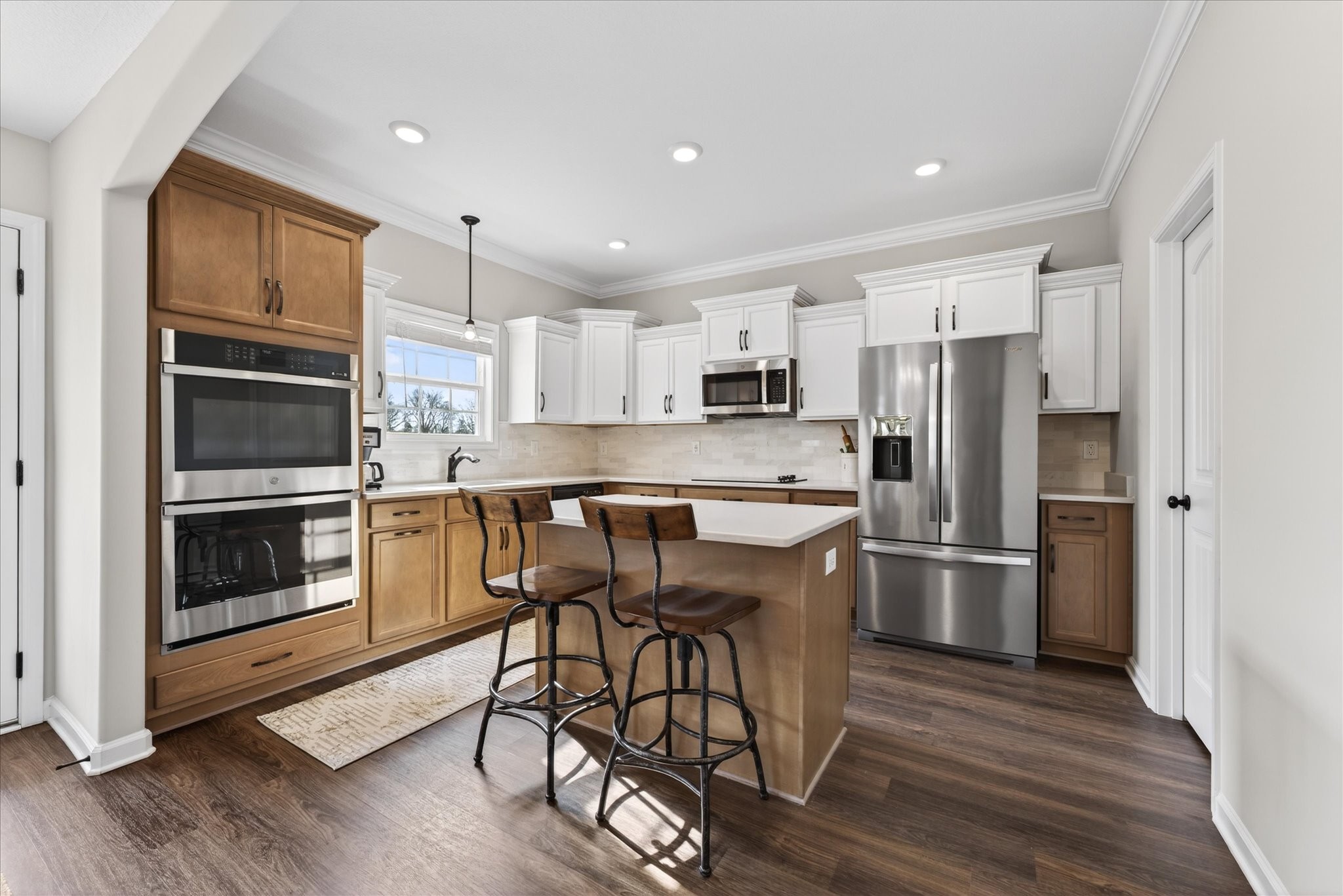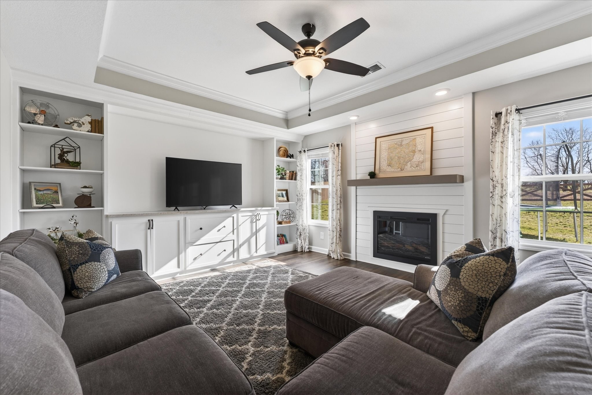 Bright, open, and filled with natural light, this home blends elevated finishes with a floor plan that defines versatility. Positioned at the end of a quiet cul-de-sac with no backyard neighbors, it offers privacy and peaceful surroundings. A 10-person tornado shelter provides exceptional peace of mind, while the thoughtfully planned layout adapts to multiple needs. With a full bath on the main level and generously sized rooms throughout, this flexible floorplan allows for a dedicated office space, bonus room, or additional guest room, whatever you're looking for it can adapt too. Built in 2024 and truly better than new, the interior showcases carefully selected upgrades throughout. A stunning custom built-in anchored by Taj Mahal natural stone creates a beautiful focal point, complemented by oversized functional… Read Morestorage for blankets and games, and side bookshelves that add warmth and character. The living room centers around a cozy fireplace and flows seamlessly into the bright kitchen, complete with double ovens, modern finishes, and generous workspace. Upstairs, the primary suite features two walk-in closets, while the secondary bedrooms share a convenient Jack-and-Jill bathroom. The upstairs laundry room adds everyday practicality. Blinds throughout, a welcoming front porch, and a covered back patio with a french drain in the backyard complete this thoughtfully designed home. Better than new, beautifully finished, and positioned on one of the most desirable lots in the neighborhood, this home offers comfort, flexibility, and privacy all in one.Read Less