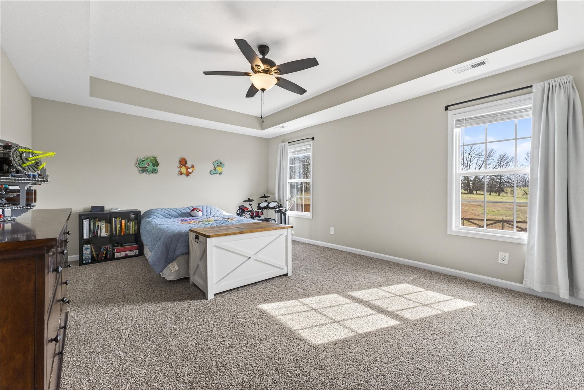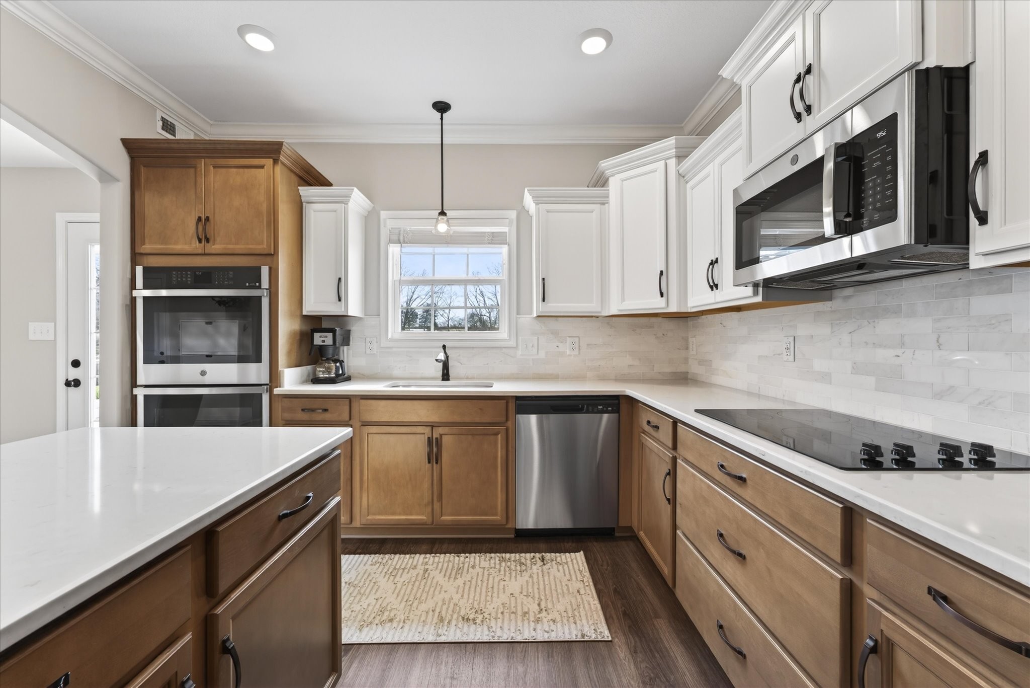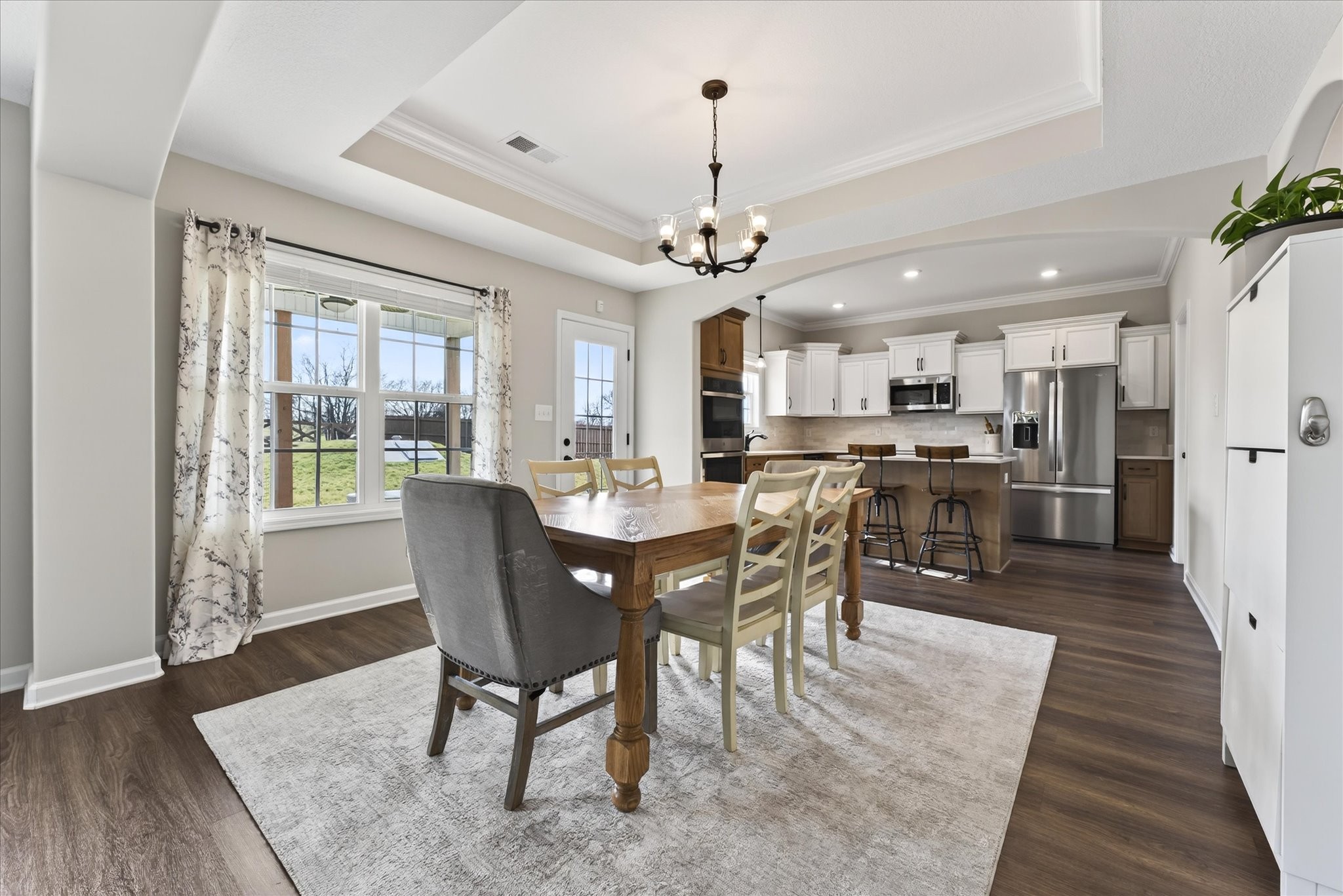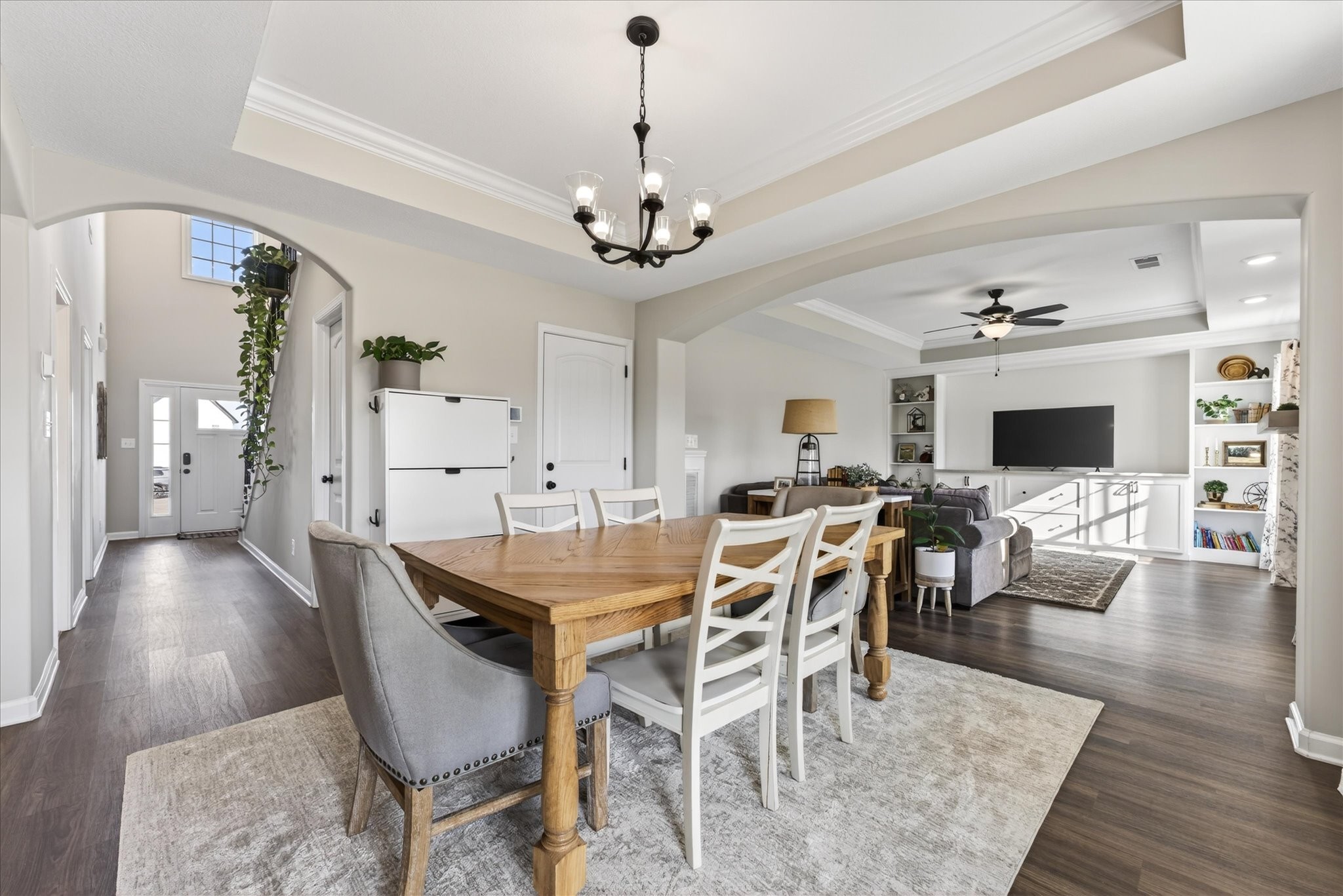 Bright, open, and filled with natural light, this home blends elevated finishes with a floor plan that defines versatility. Positioned at the end of a quiet cul-de-sac with no backyard neighbors, it offers privacy and peaceful surroundings. A 10-person tornado shelter provides exceptional peace of mind, while the thoughtfully planned layout adapts to multiple needs. With a full bath on the main level and generously sized rooms throughout, this flexible floorplan allows for a dedicated office space, bonus room, or additional guest room, whatever you're looking for it can adapt too. Built in 2024 and truly better than new, the interior showcases carefully selected upgrades throughout. A stunning custom built-in anchored by Taj Mahal natural stone creates a beautiful focal point, complemented by oversized functional… Read Morestorage for blankets and games, and side bookshelves that add warmth and character. The living room centers around a cozy fireplace and flows seamlessly into the bright kitchen, complete with double ovens, modern finishes, and generous workspace. Upstairs, the primary suite features two walk-in closets, while the secondary bedrooms share a convenient Jack-and-Jill bathroom. The upstairs laundry room adds everyday practicality. Blinds throughout, a welcoming front porch, and a covered back patio with a french drain in the backyard complete this thoughtfully designed home. Better than new, beautifully finished, and positioned on one of the most desirable lots in the neighborhood, this home offers comfort, flexibility, and privacy all in one.Read Less